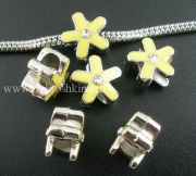 Шарм-подвеска, бусина эмаль желтая "Лютик" серебро, 12х9 мм