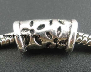 Бусина металлическая для европейского браслета "Трубка с листочками"
